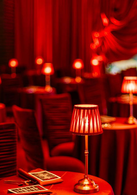 An immersive crimson environment designed for spectacle. Guests entered a transformed lobby layered in dramatic red drapery, custom carpeting, and a statement bar, culminating in a live orchestra performance and a lacquered piano photo moment for a private dining and concert simulcast experience.